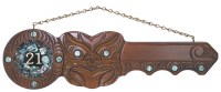 Wooden Carved 21st Key - Mask with paua inlaid 21