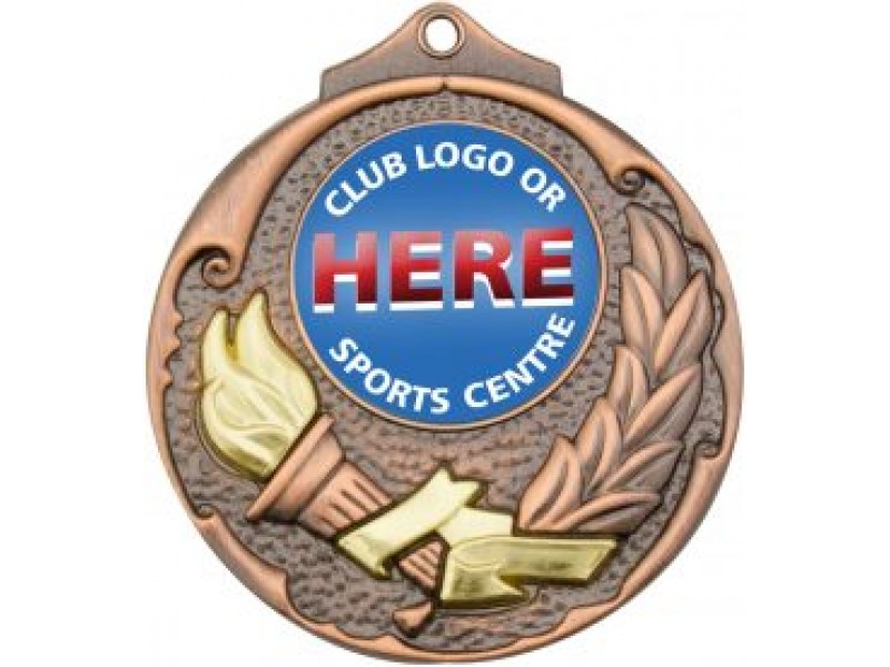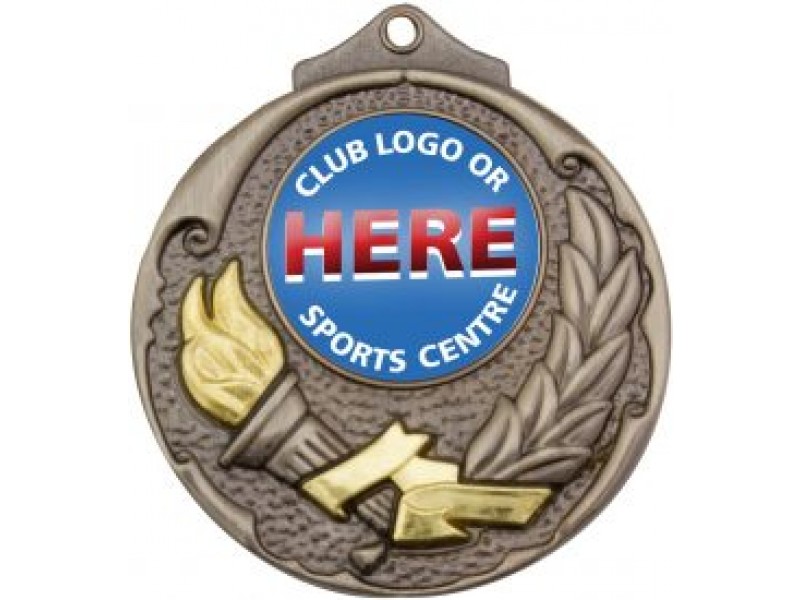 Classic choice for medals – the victory torch and wreath design frame your particular 25mm logo insert perfectly. The achievement style medals are finished in traditional antique gold, silver and bronze. You can use your own logo or select from the big range of generic sporting inserts available. Ribbons in all colours and medal presentation boxes also available.